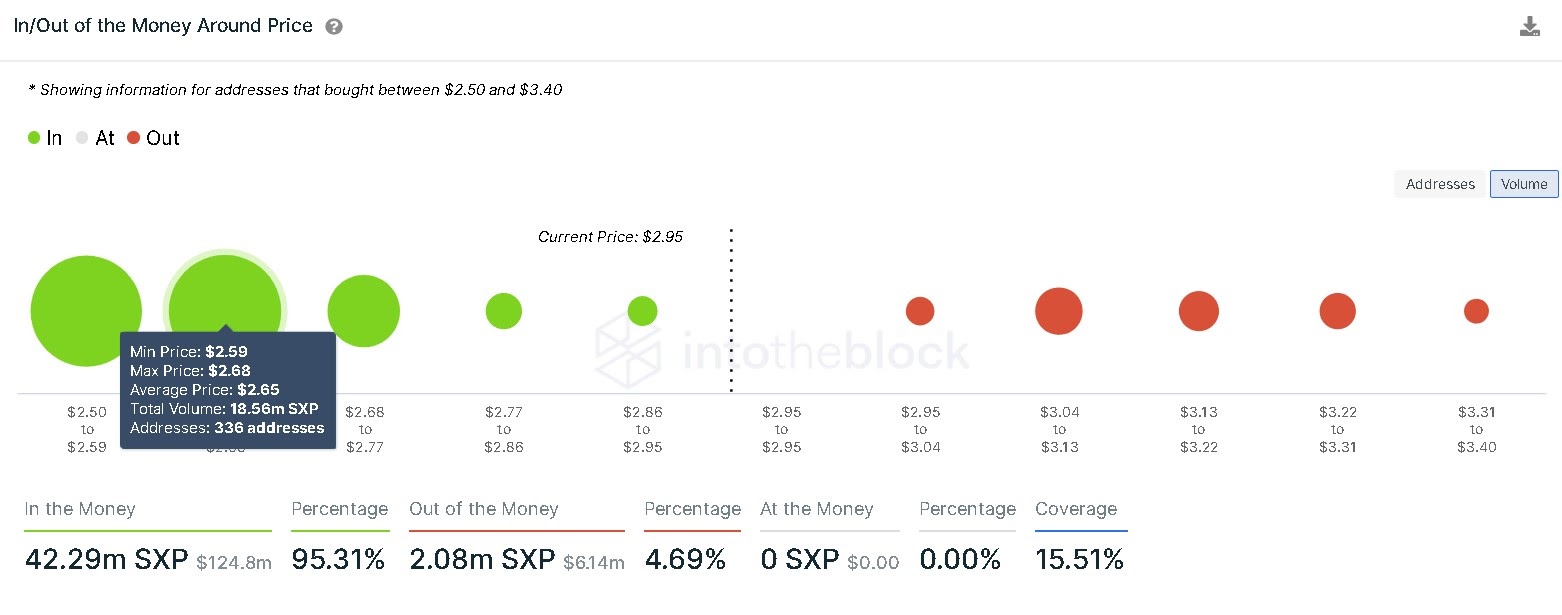 - Transactional data shows stable support below the current price level and little to no resistance ahead for SXP.
