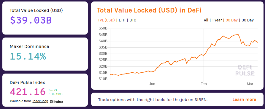 Total Value Locked: $39.03B (up 9.3% since last week)
