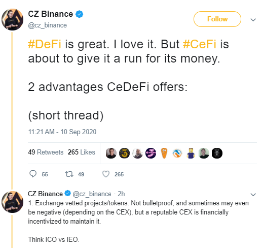 The founder and CEO of Binance, Changpeng Zhao, famously said that BSC is like “CeDeFI,” or centralized DeFi. The tweet where he made these comments has since been deleted, but according to BSC’s founder, it is not a decentralized financial application ecosystem.