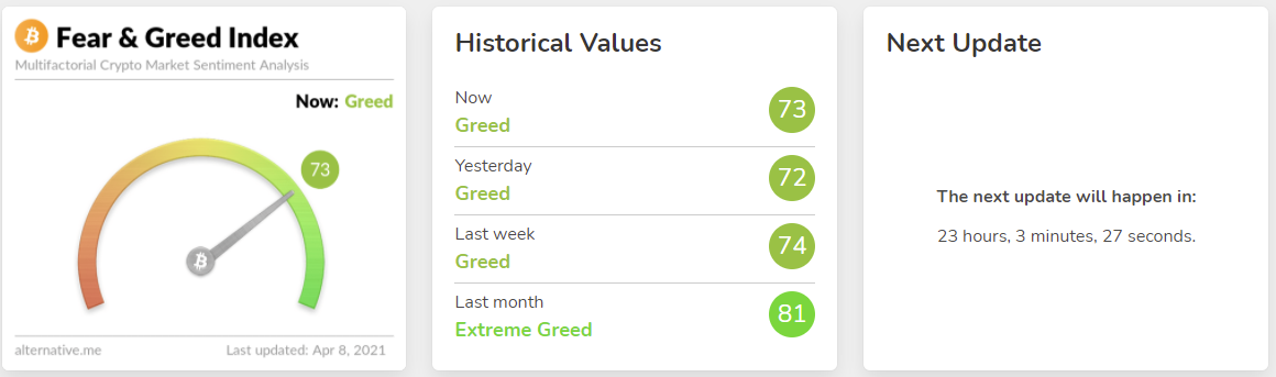 But other analytics platforms show a less convincing shift, with crypto predictive data platform Augmento seeing sentiment slide from “bullish” to “slightly bearish.” The Alternative Crypto Fear & Greed index, meanwhile, shows almost no change, with the counter still clearly sitting at “greed.”