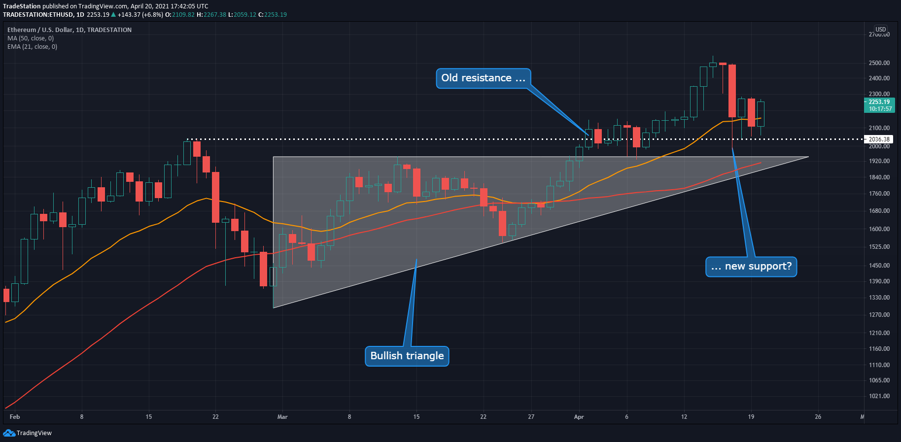 Ethereum had a mini-crash over the weekend along with other cryptos, but there’s been very little follow through to the downside.