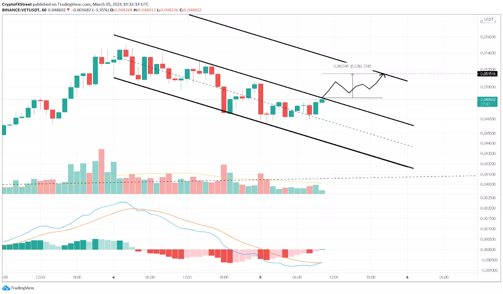 VeChain price moves a step closer towards the parallel channel’s upper trendline as bullish momentum increases. A successful breakout hints at a 5.65% uptick in VET price to $0.051. Read more…